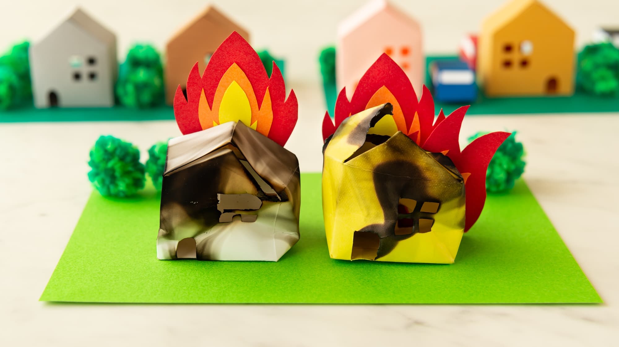 家屋のプラスチックの照明器具が変形しておれば、80~100℃の火熱があり、アルミニウムのサッシが溶けていたら、660℃以上の火熱があったと判断する。